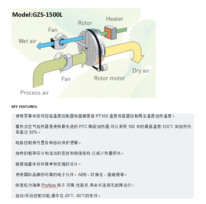 高振轉(zhuǎn)輪除濕機(jī)是本公司在十余年冷凍除濕機(jī)設(shè)計、制造經(jīng)驗的基礎(chǔ)上開發(fā)出的來可以在低溫環(huán)境下使用的除濕設(shè)備,由于冷凍除濕機(jī)的溫度適用范圍為18-38度,在低溫環(huán)境中除濕量大幅度下降,甚至出現(xiàn)結(jié)霜不除濕的現(xiàn)象,且最低濕度在RH30%時已無法再下降,無法適用于有低溫低溫要求的環(huán)境。轉(zhuǎn)輪除濕機(jī)解決了這一行業(yè)難題,拓展了除濕機(jī)的應(yīng)用領(lǐng)域,在冷庫、制藥、鋰電池、膠片車間、玻璃合片等場所應(yīng)用廣泛,在食品、海產(chǎn)干貨應(yīng)用方面也起到重要作用。